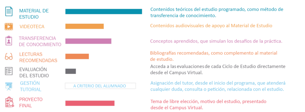 Usted dispone del programa de estudio, de una forma cómoda y precisa, contenida en soportes digitales basados en el estándar PDF, que podrá descargar en su equipo y desarrollar a su ritmo, generando su propio cronograma académico.